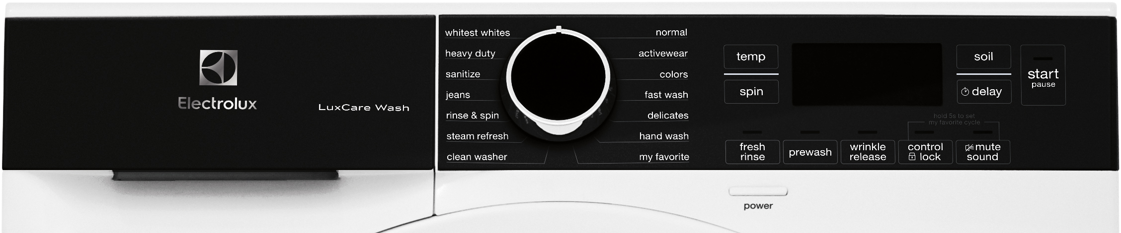 • Options: Fresh Rinse, Prewash, Wrinkle Release, Control Lockout, Mute Sound, Delay Start